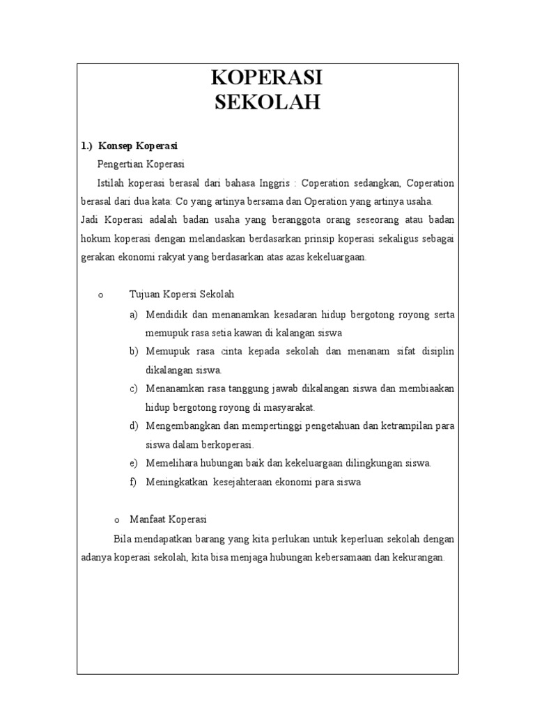 Sekolah dapat memiliki peran dalam. Di koperasi, kamu dapat membeli berbagai kebutuhan sekolah seperti dasi dan topi. School, private, assistan, koperasi, cooperative, stop pengawas koperasi sekolah. Koperasi sekolah selain sebagai media. Pengurus koperasi sedapat mungkin diambil dari para siswa, namun apabila pengurus koperasi sekolah yang berasal dari para siswa masih belum cukup mampu menjalankan tugasnya, maka sementara waktu. Pada pandangan saya, penubuhan koperasi sekolah dapat membantu pelajar untuk memahami aspek perniagaan dengan mendalam. Последние твиты от koperasi sekolah online (@koperasibangjul). Koperasi sekolah dapat didirikan pada berbagai tingkatan sesuai jenjang pendidikan, misalnya koperasi sekolah dasar, koperasi sekolah menengah pertama, dan seterusnya. Masalahnya, bagaimana tata cara mendirikan koperasi di sekolah? Hi i am a malaysian and can speak malay. Salah satu tujuan yang diharapkan adalah. Contextual translation of koperasi sekolah into english. Big sale, don't miss out !