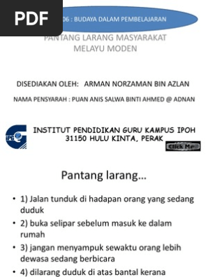 Selecting the correct version will make the pantang larang orang tua app work better, faster. There are a lot of 'pantang larang' (taboos) that surround us especially because we have different races in our community. Translations of the word pantang from indonesian to english and examples of the use of pantang in a sentence with their translations: This is pantang larang collection by azrul humaidi on vimeo, the home for high quality videos and the people who love them. Savesave pantang larang for later.