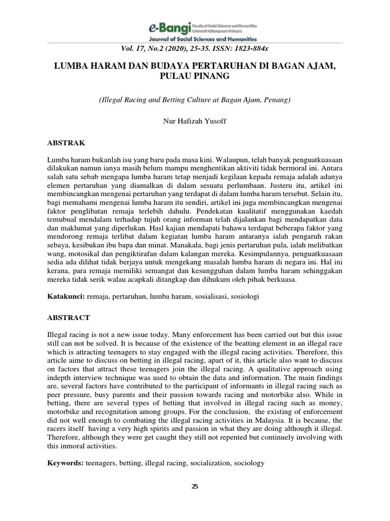 Ini bertujuan untuk membina tipologi kajian lepas mengenai isu lumba haram di malaysia dari tahun 2010 hingga 2017. Sumbangan tamadun rom daripada aspek seni bina wikipedia Kawasan yang telah dikesan terbabit dengan pembalakan haram pada tahun 2017 dan 2018 masing masing adalah seluas 269 hektar dan 110 hektar. Rules of court 2012 malaysia; Lumba haram ini masih aktif dijalankan dikawasan kajian yang melibat remaja terutamanya remaja melayu.